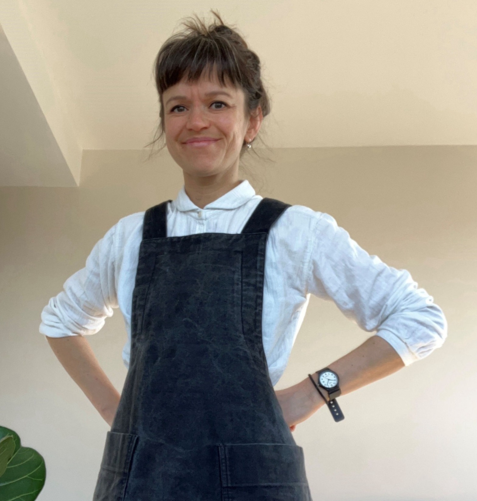 Wearing the jumpsuit that I made during the pandemic with deadstock fabric from my local discount homewares shop and a pattern from Merchant and Millls.